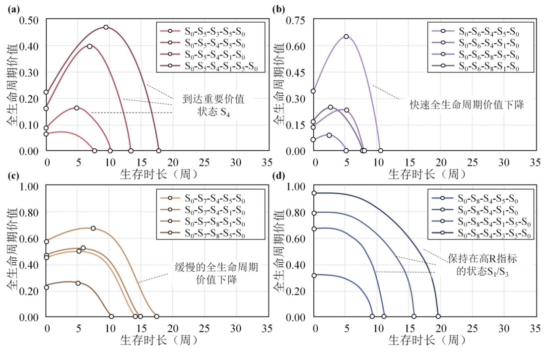 不同初始状态下的全生命周期价值-生存时间分布